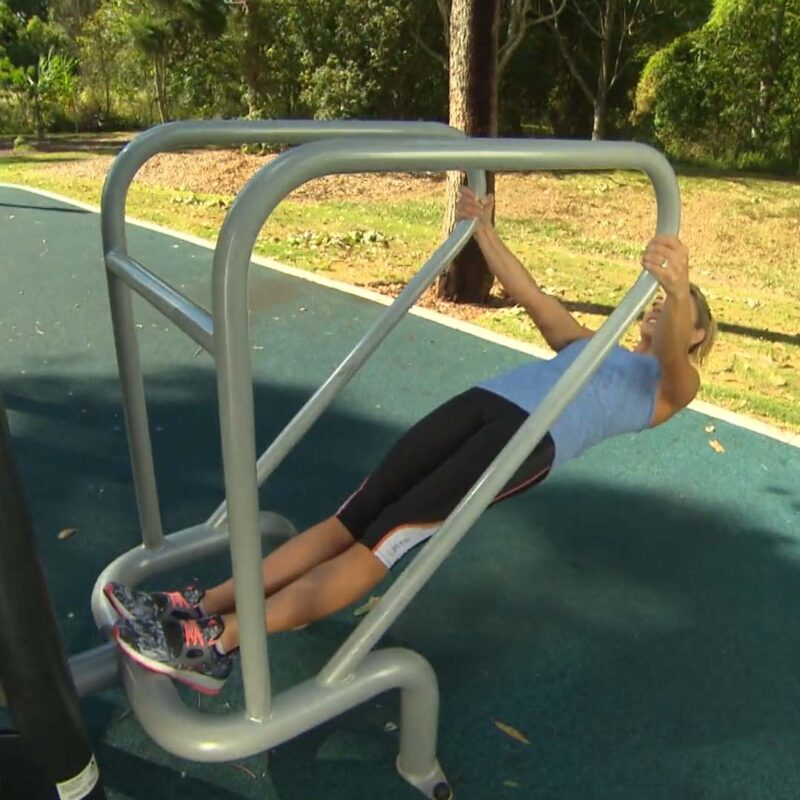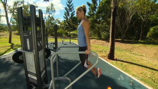 The Body Pulls and Push Ups station is an outdoor exercise set up that combines two effective bodyweight exercises: body pulls (inverted rows) and push ups. It targets multiple muscle groups, including the back, shoulders, arms, and chest, promoting overall upper body strength and improved posture. Users can adjust the intensity by modifying their body position, making it accessible for beginners and challenging for advanced users.