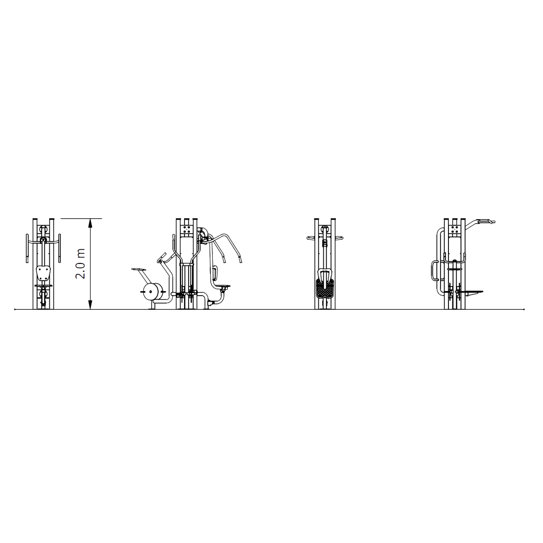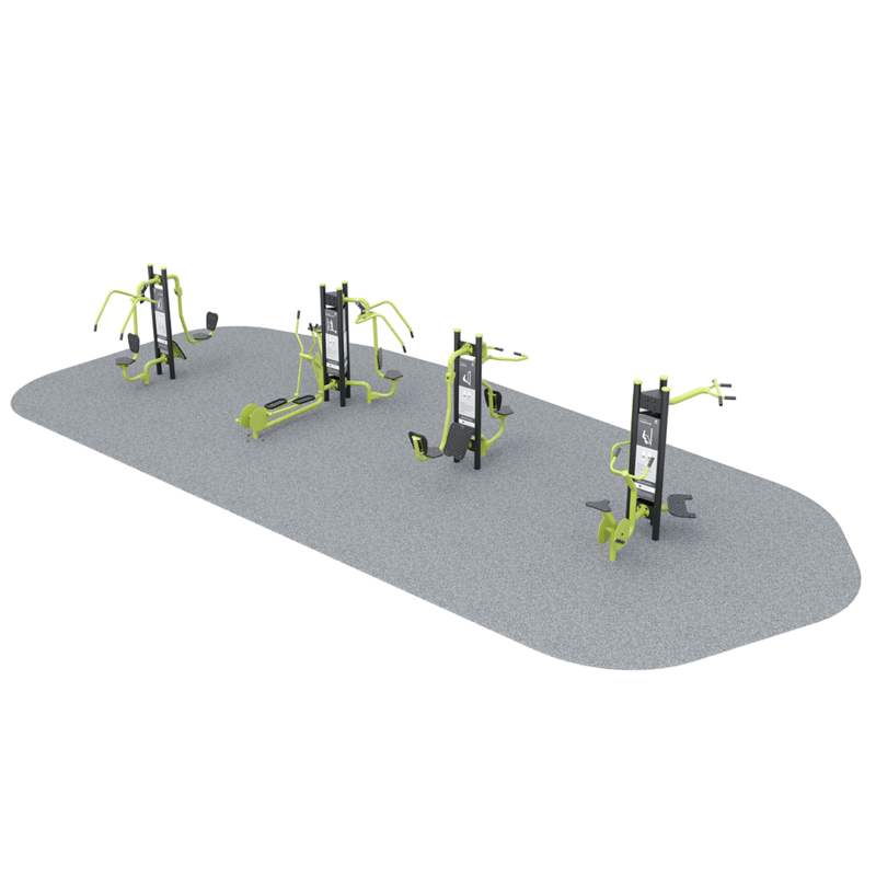 Our 10 Station Cardio & Strength Circuit is a comprehensive outdoor fitness solution featuring 10 integrated stations like chest press, leg press, pull ups, aerobic cycle, elliptical trainer, pull downs and stretch station to deliver strength, cardio and mobility training for all ages and fitness levels in community spaces