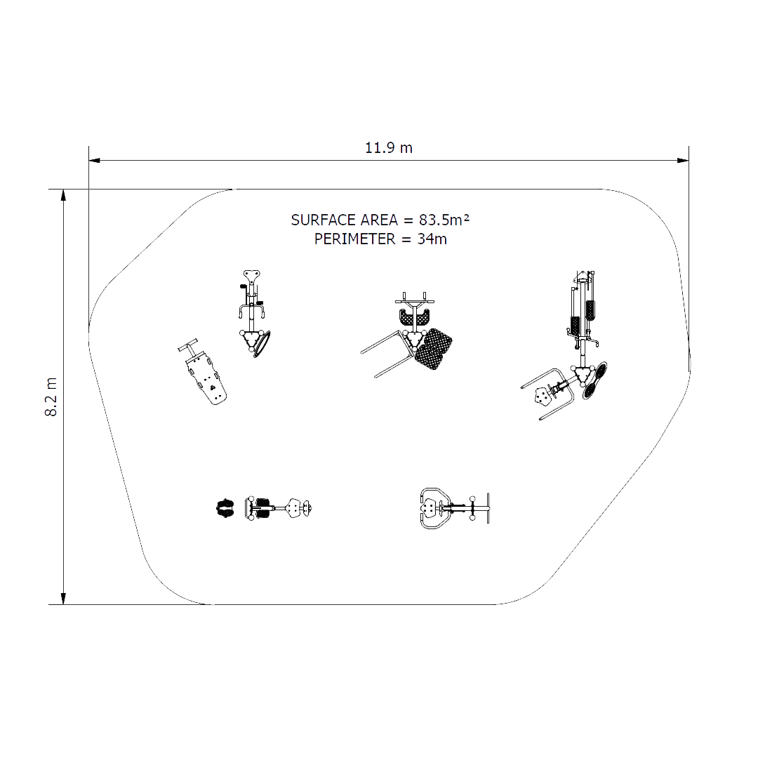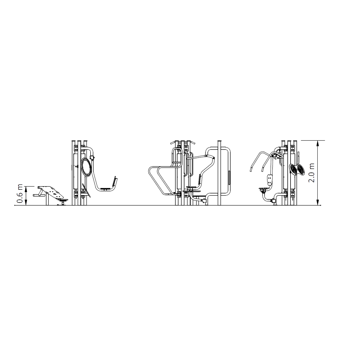 Our 13 Station All Access Gym is a comprehensive outdoor fitness circuit with 13 integrated stations like step up platforms, pull ups, chest press, leg press, pull downs, body twist, stretch station and more that deliver strength, mobility and functional training for users aged 12 and up in parks and community spaces.
