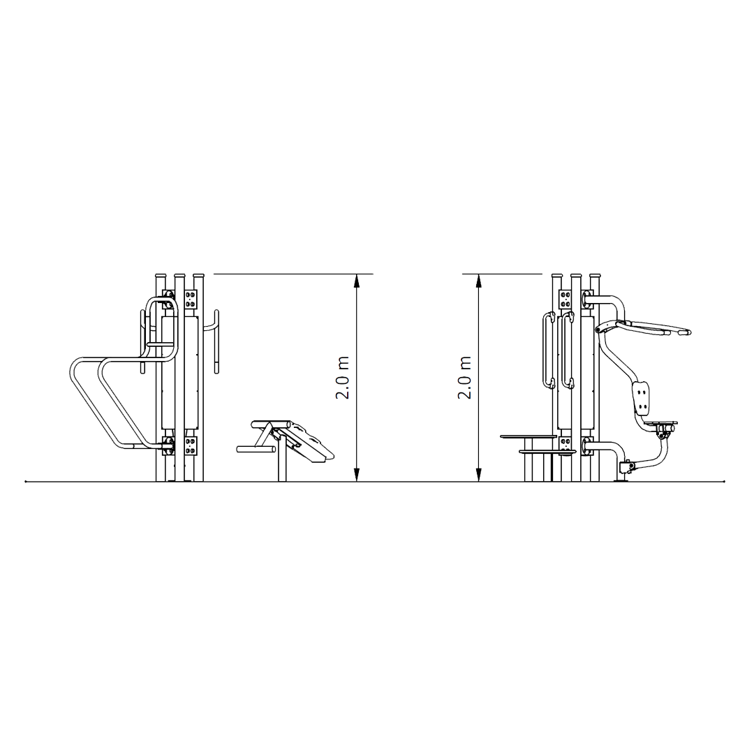 6 Station All Access Gym is an inclusive outdoor fitness circuit featuring six versatile stations that support upper body strength, core stability, endurance, and functional movement, designed for schools, parks, and community fitness spaces.