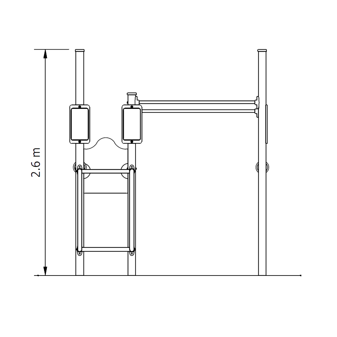 Our 6 Station All-Access Gym is an outdoor fitness circuit featuring six progressive stations designed to develop upper body strength, grip endurance, core stability, and agility, ideal for schools, parks, and community fitness spaces.