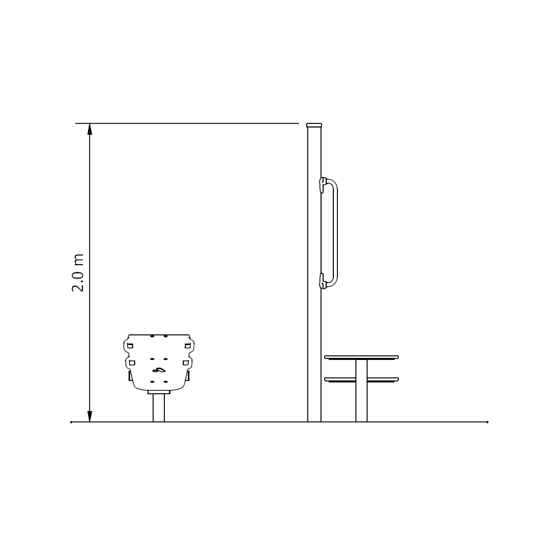 Step Ups – Providing two steps of different heights. The lower step with grab rail is great for seniors to build leg strength and enhanced mobility. The upper step offers a greater challenge for people with greater fitness levels.