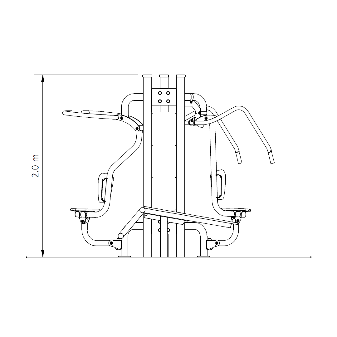 Chest Press – Develops upper body strength. The level of effort can be increased by lifting one or both feet off the ground while performing the exercise.