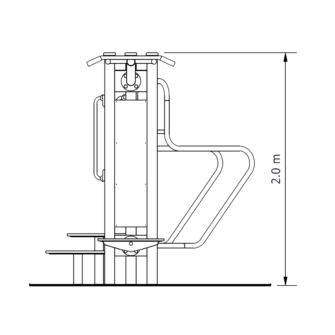Step Ups – Providing two steps of different heights. The lower step with grab rail is great for seniors to build leg strength and enhanced mobility. The upper step offers a greater challenge for people with greater fitness levels.