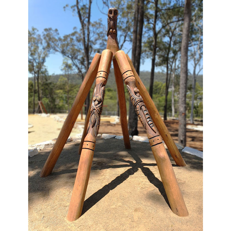 A great addition to any nature playground, this hardwood teepee creates a central hub for creative and imaginative play. Choose from smooth ironbark logs, or get something unique to your surrounds with handcarved artisanal designs from our local artists.