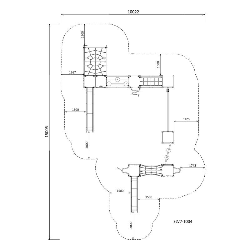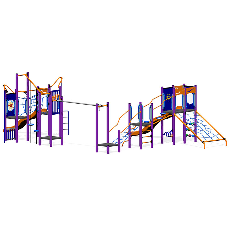 This large Elevate structure packs in loads of play value. Climbing from platform to platform across Steppers, Cargo Net Climber, Hang N Glide and Tube Web. Then we added 2 Wave Slides, Ladder Poles, Fire Pole, Inclined Spider Web, S Climbers, and low elements like an Abacus and Spiral Abacus means this playground has something for everyone.