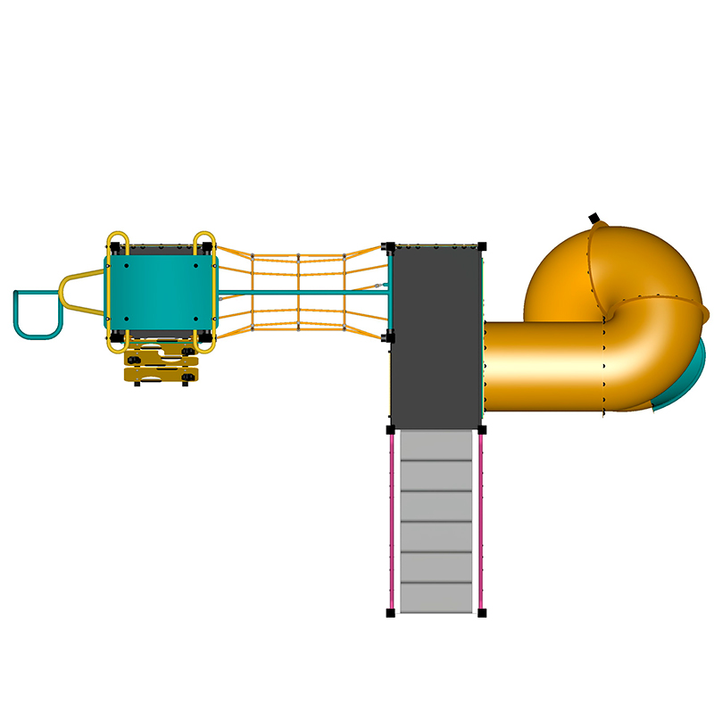 Climbing, hanging and sliding are the key elements of this structure. A Spiral Tunnel Slide, Cliff Climber, Ladder Reach, and a challenging Tube Net make this a small climbers dream.