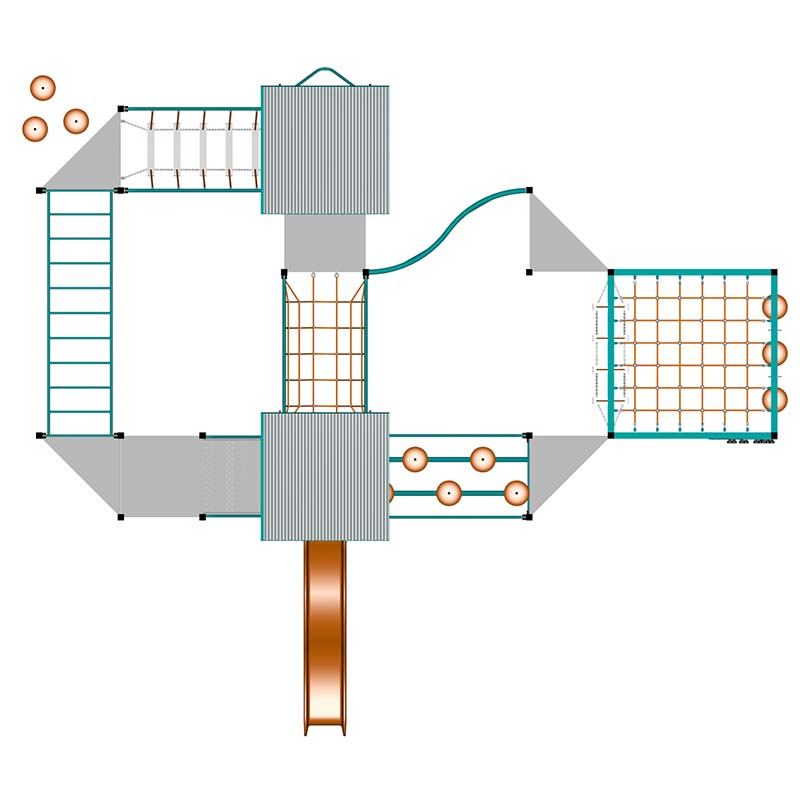 Our Cube is the feature of this playground, Kids love to climb and the cube has plenty of climbing space for multiple children. We also added Steppers, Step Crossing, Step Traverse, Rock Wall, Congo Net, Xylophone Panel, Fire Pole and Wave Slide.