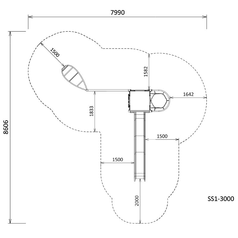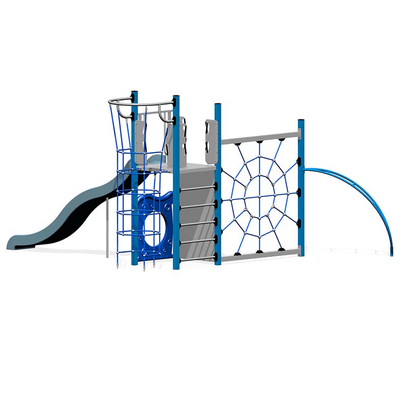This compact playground includes a Cresent Climber, Spider Web Tube, Tunnel Net and Slide. A little playground with a lot of play value.