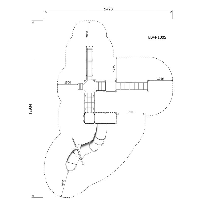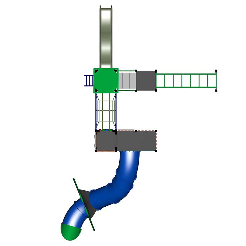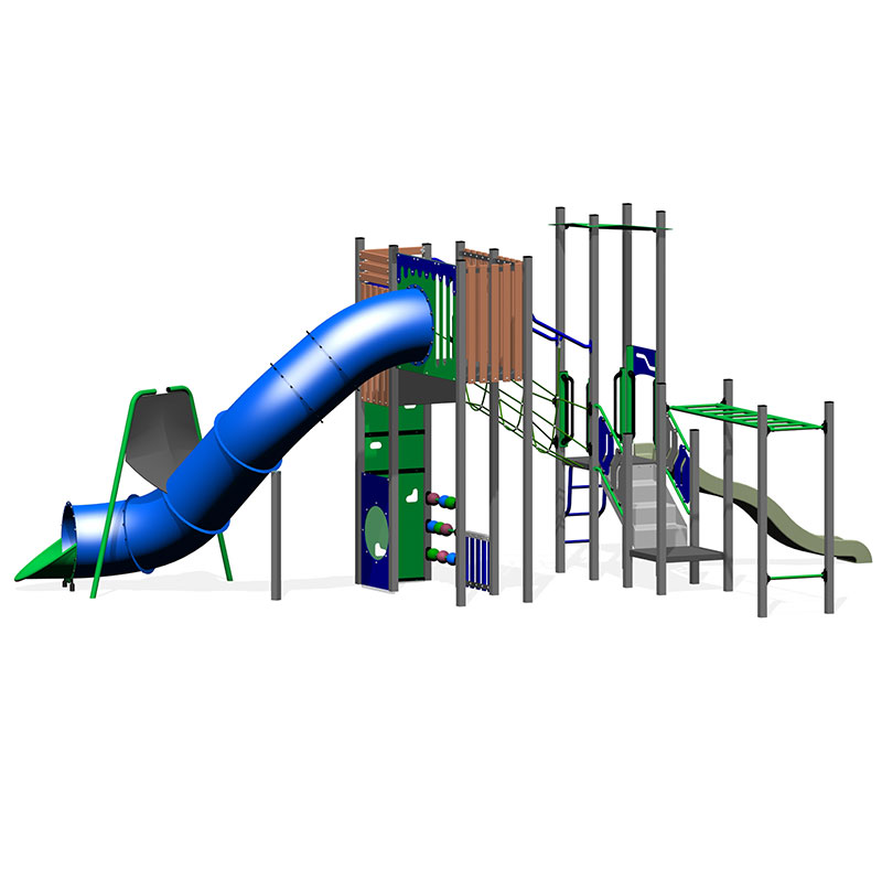 4 exciting levels to conquer in this tall playground. Rock Climbing Walls and a Wave ladder to access the platforms. It also features a long Tunnel Slide and a Wave slide as well as playground favourites, the Monkey Bars.