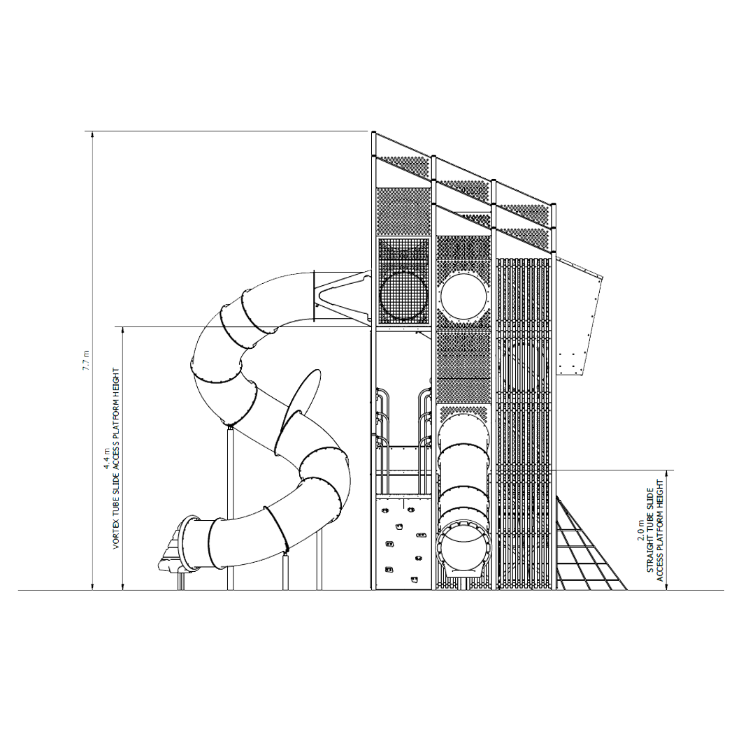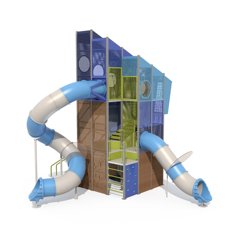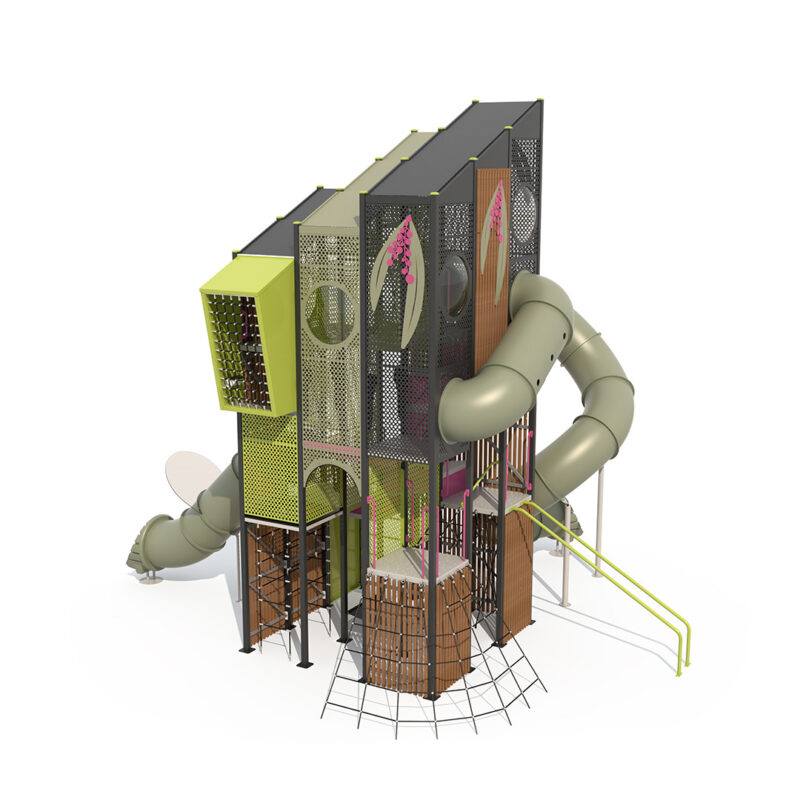 This enormous play tower is overflowing with play value. With over 7 different types of climbers from the ground up, a massive vortex slide, internal mazes and rope climbers, kids will find endless opportunities to have fun, challenge themselves and develop new skills. This tower offers an abundance of opportunities to explore and interact and is sure bring out children’s playful curiosity.