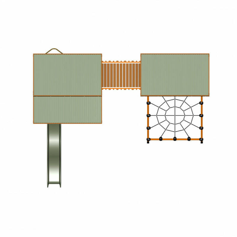 The fort style structure with a slide, spider web and fire pole is a beautiful nature-inspired playground.