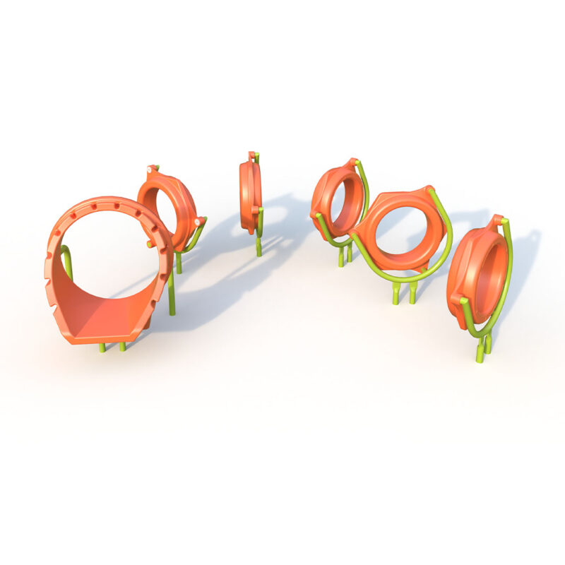Five Slinks arranged in a dynamic snake configuration create a fun and challenging playground feature that encourages balance, movement, and active play for children of all ages.