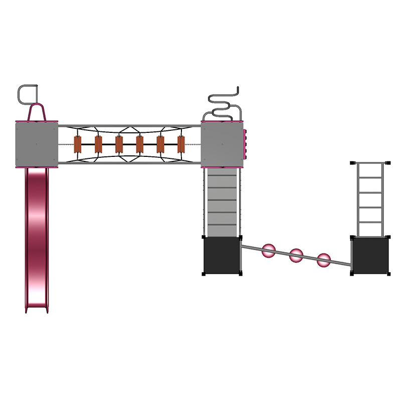 The adventurer’s playground! Monkey Bars, a Pommel Walker, Scatter Bridge Joiner, a Ladder Reach, Spiral Abacus and Xylophone. So many fun ways to cross from platform to platform!
