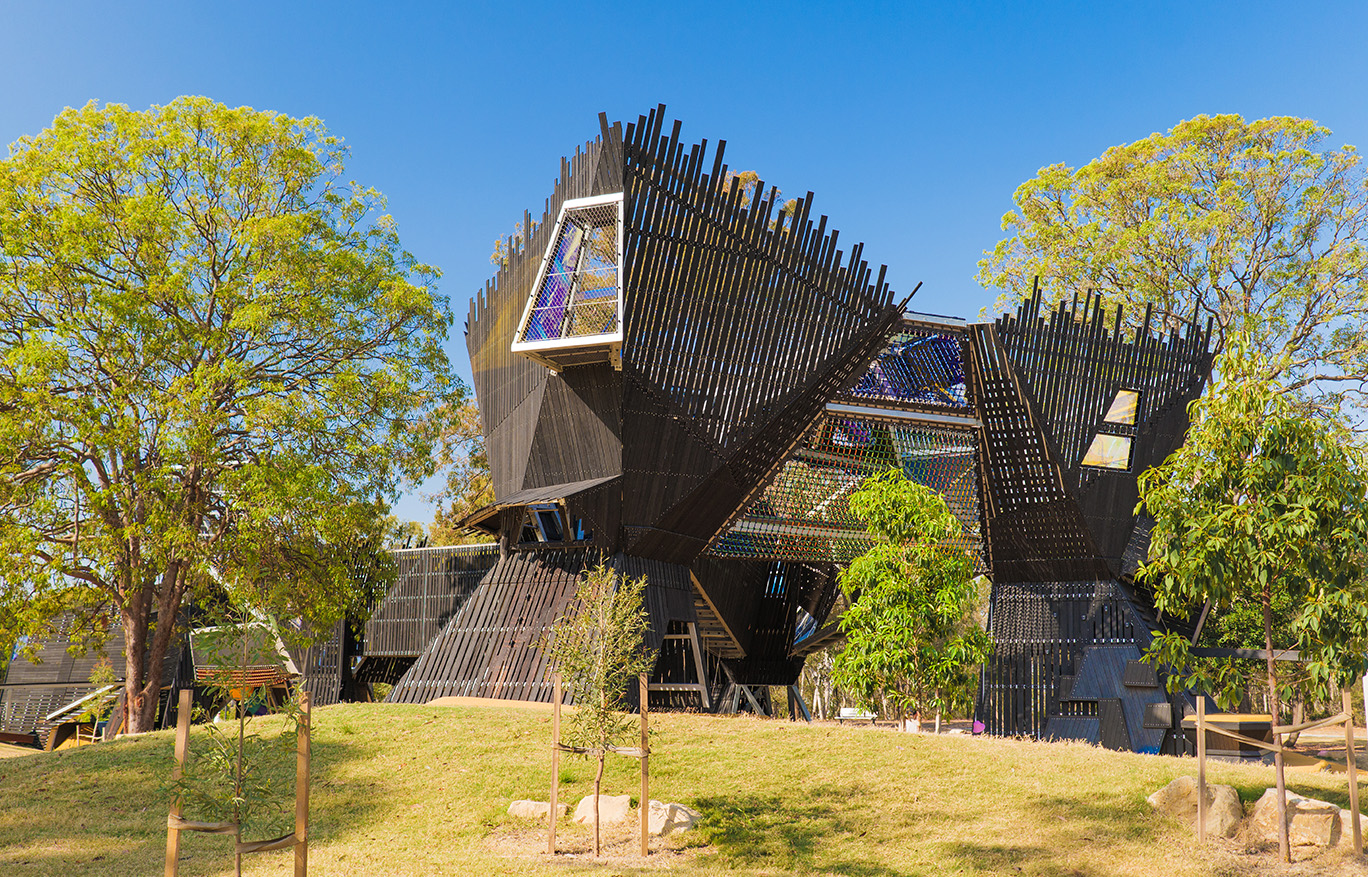 This concept draws inspiration from the surrounding habitats of local lorikeets. The ‘biological city’ is made up of a complex series of ‘hollows’ (the tower-like structures) and ‘byways’ (connecting bridges). ‘Hollows’ are everywhere within the landscape and home to local lorikeets, which is where inspiration is found for the shape, form, and name. ‘Byways’ is the road less travelled, but it also alludes to a sense of mystery the playground’s form provides.
