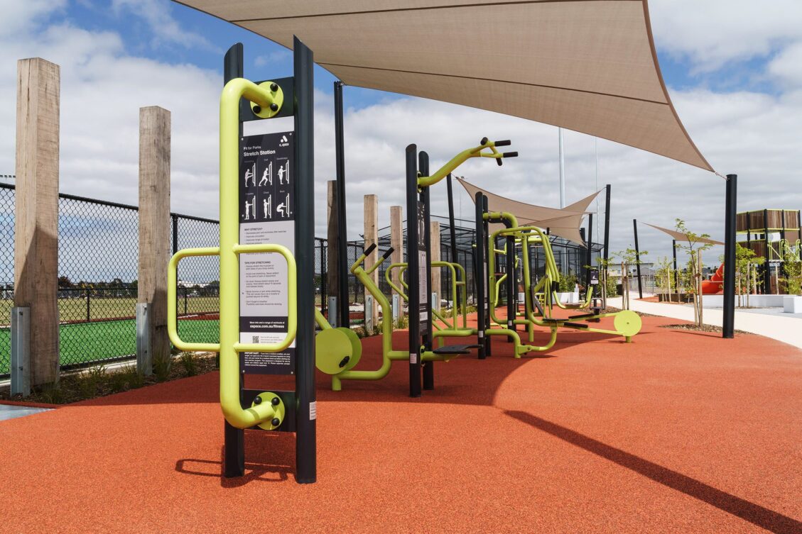 ASpace was approached by a leading landscape architect engaged by Council to design a showcase space for kids and adults to play, exercise and socialise together. The space was located beside a new sporting oval within a new housing development.