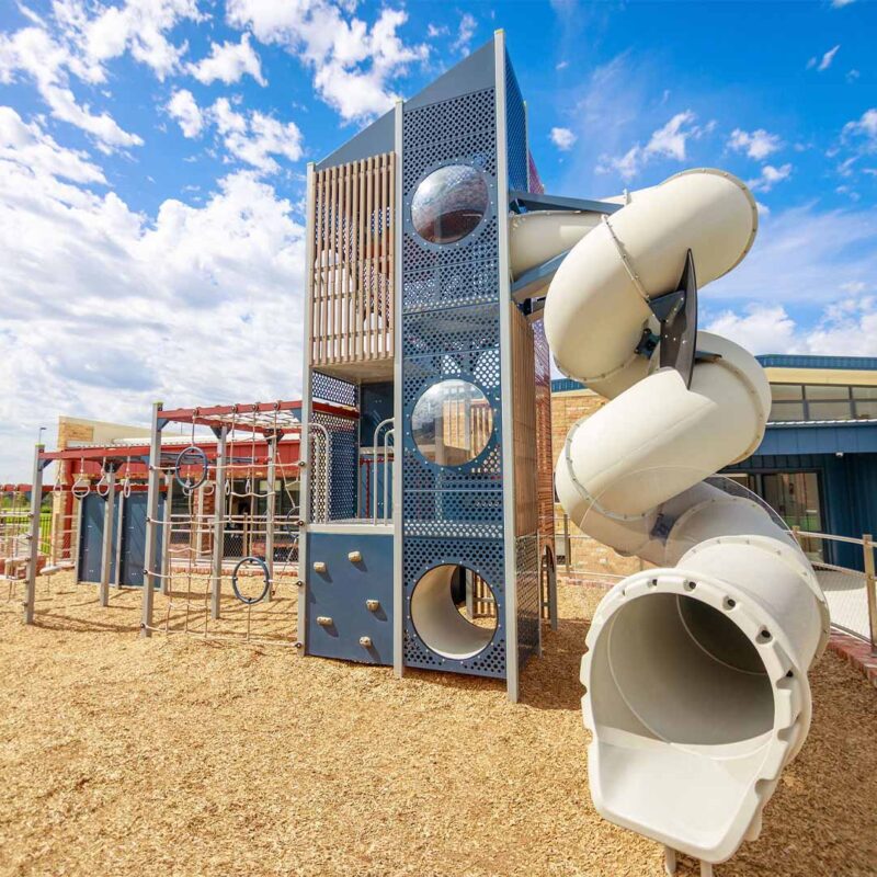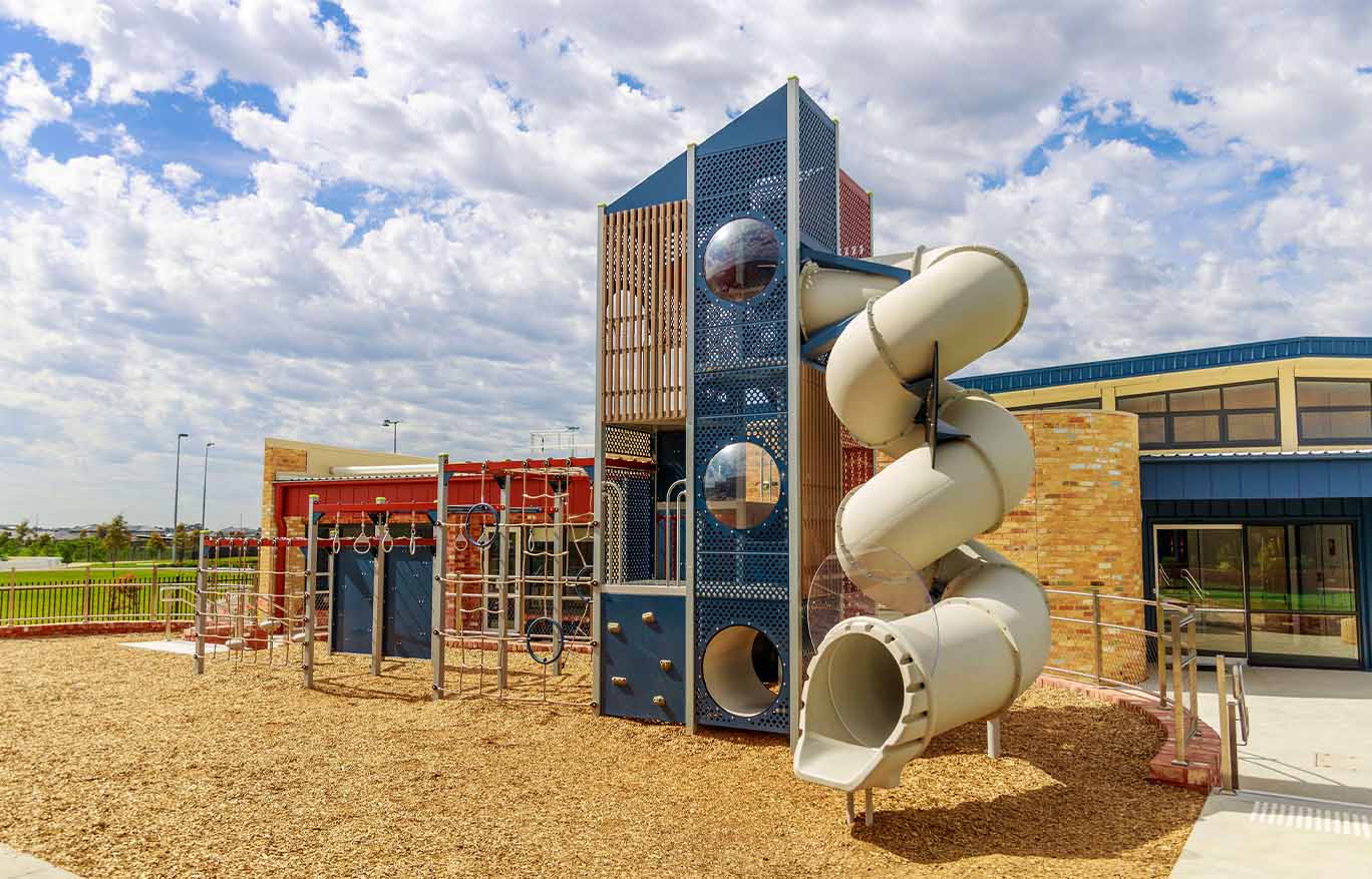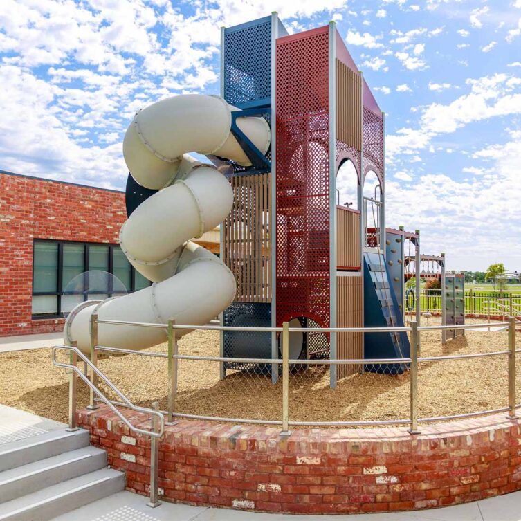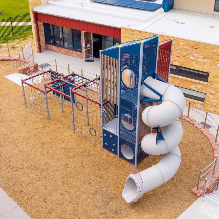 The new playground at Hume Anglican College’s Kalkallo campus centres around the striking Spires Tower structure, offering a versatile and engaging play experience that encourages climbing, balancing and imaginative exploration; complemented by slides and interactive elements, the space is designed to be safe and inclusive, giving students of all ages a stimulating environment to develop confidence, coordination and social connections while enjoying active outdoor play.