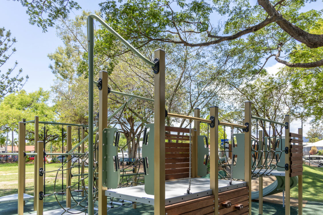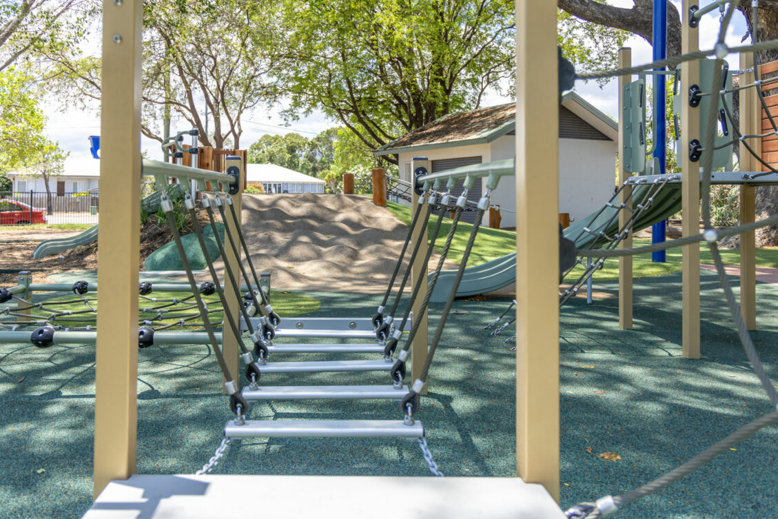 Our contract also included constructing a mound for the embankment slide, timber balustrade & climbing items, and the softfall comprised of a combination of Synthetic Grass, Rubber Wetpour & Sand.