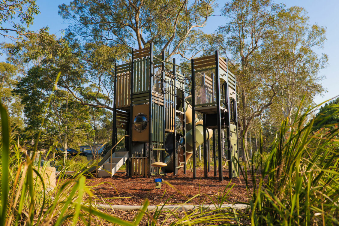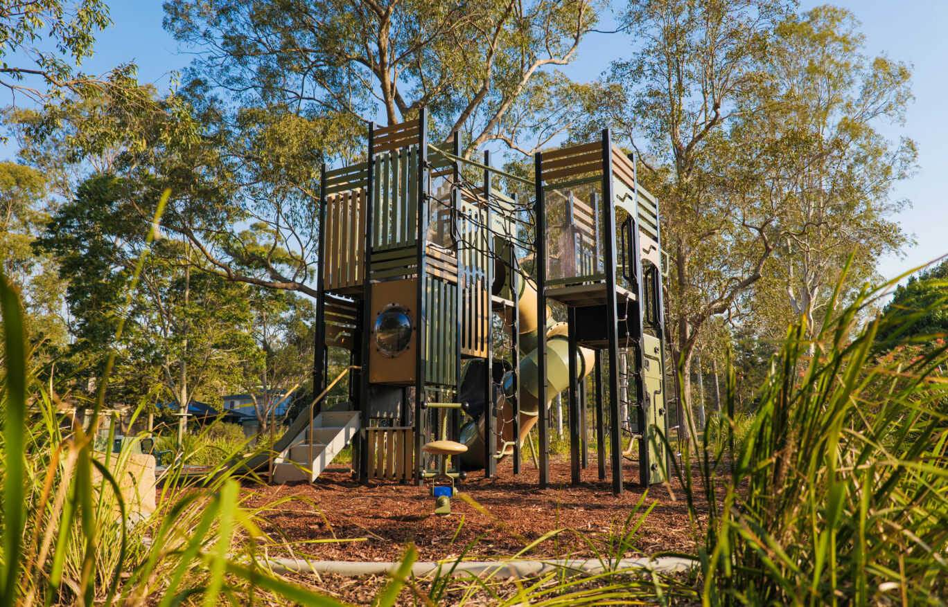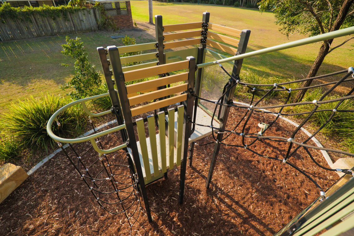 Moreton Bay Regional Council wanted a statement piece for this park and that is exactly what they got! We delivered this Elevate tower with a swing, twirler and Zephyr rocker. The council loves how seamlessly the colours compliment the beautiful surroundings.
