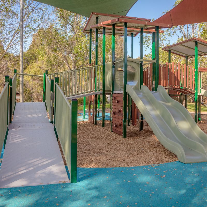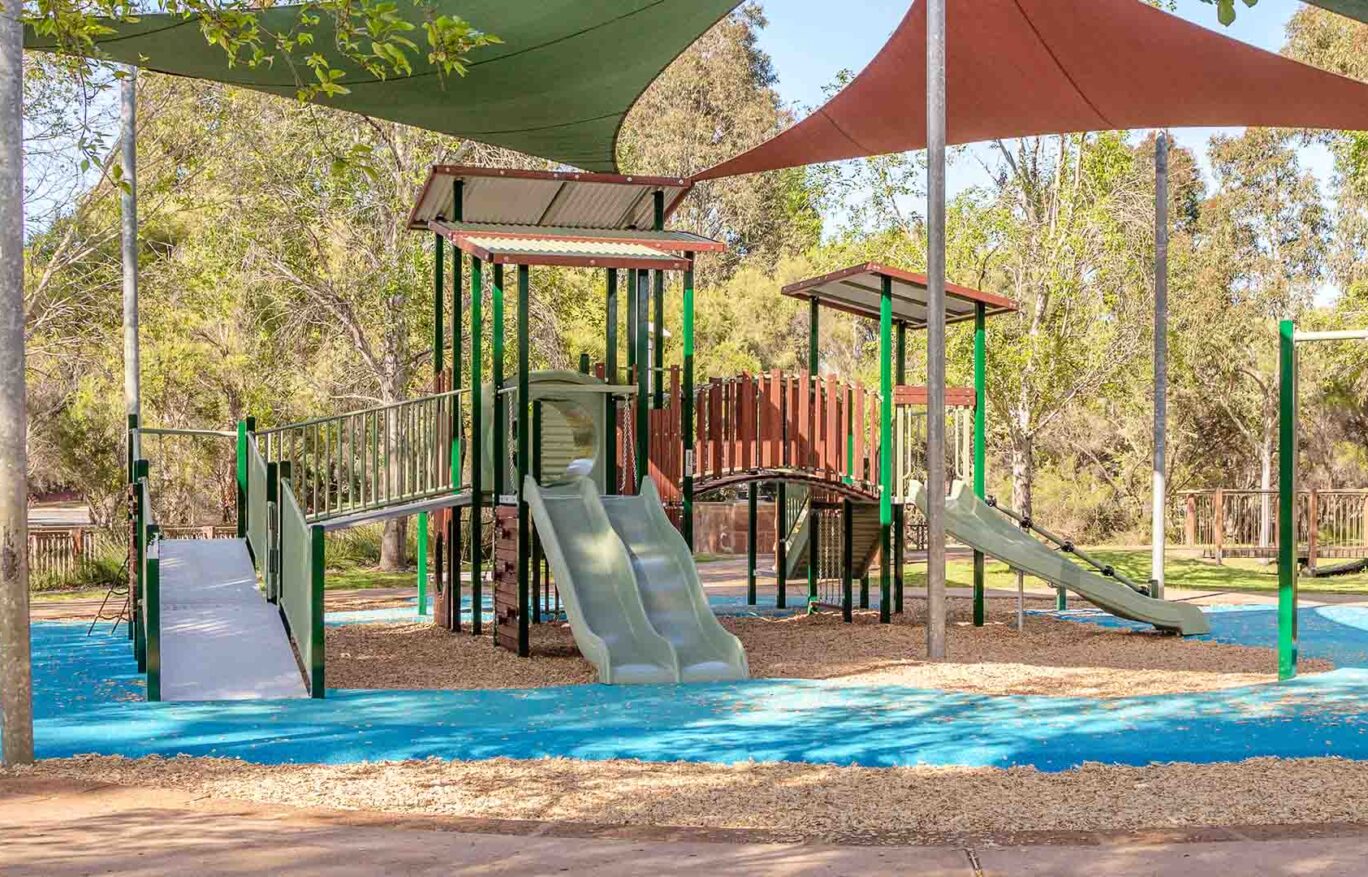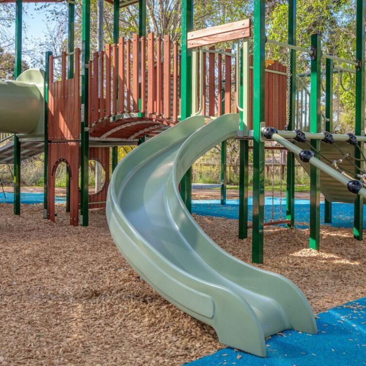 In collaboration with Plan E, we delivered a beautiful Timber Essentials playground that harmonises with the natural park setting, featuring climbing elements and cubbies.